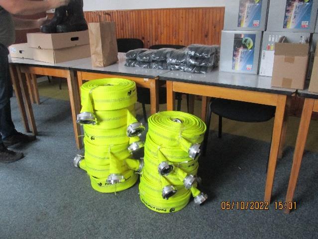 V roce 2022 jsme získali neinvestiční dotaci na pořízení chybějícího vybavení pro JSDH Slavče. Hasiči si v rámci této dotace pořídili 3ks zásahového obleku, 3x bezpečnostní zásahovou obuv, zásahové rukavice, přilby žluté, držáky svítilny a svítilny led a nové zásahové hadice žluté C52 a B75 po 6 kusech. Celkem toto vybavení stálo 261 218,-Kč. Jihočeský kraj nám na vybavení poskytl z dotačního programu 125 000.-Kč.